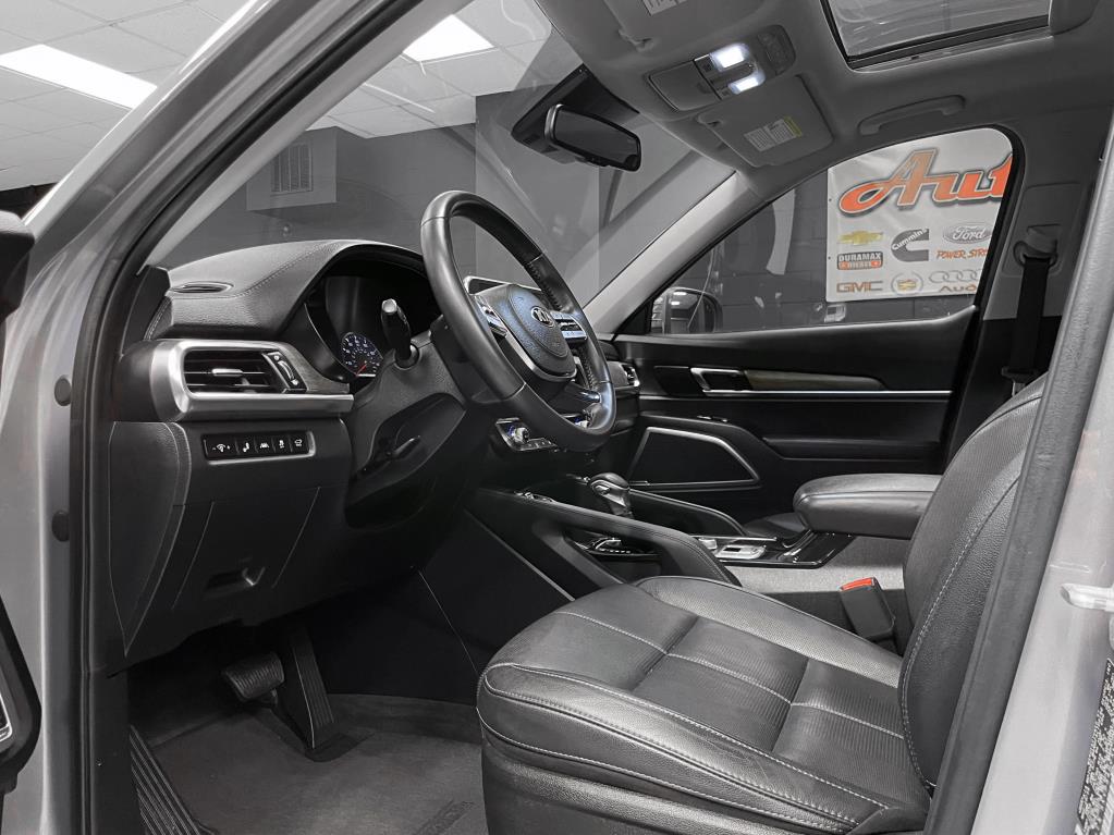 3.8L GDI 6-cylinder engine, EX Package, leather interior, sunroof, navigation, heated and cooled seats, heated steering wheel, 3-row seating, Highway Driving Assist, blindspot detection with cross-path alert, Lane Keep Assist, adaptive cruise control, proximity keyless entry with push-button start, Android Auto, Apple CarPlay, wireless phone charger, SiriusXM, surround-view camera, and trailer tow package. Auto Villa Custom Trucks, 3017 W IL 120, McHenry, IL 60051. Contact: 815-322-2340.