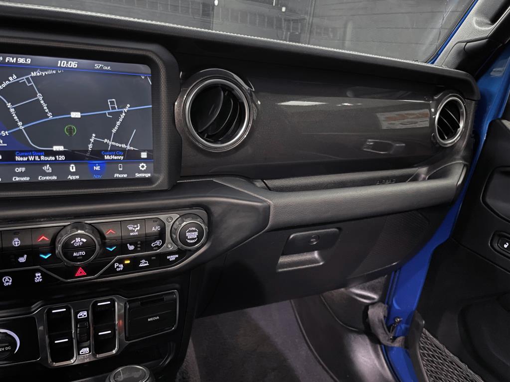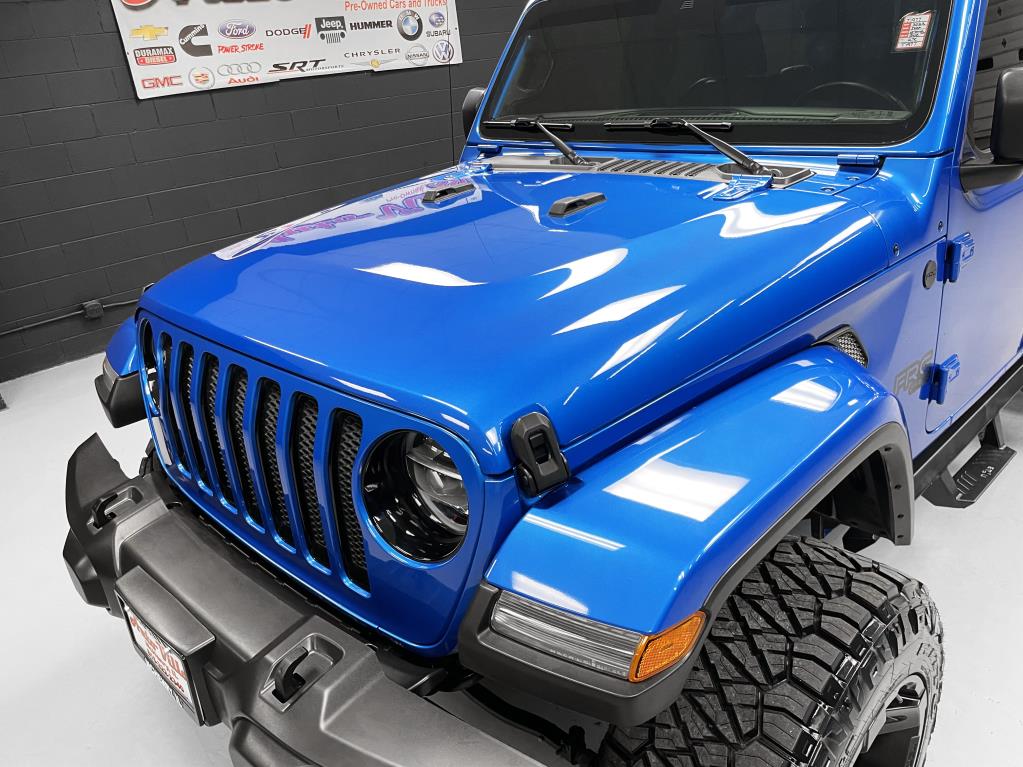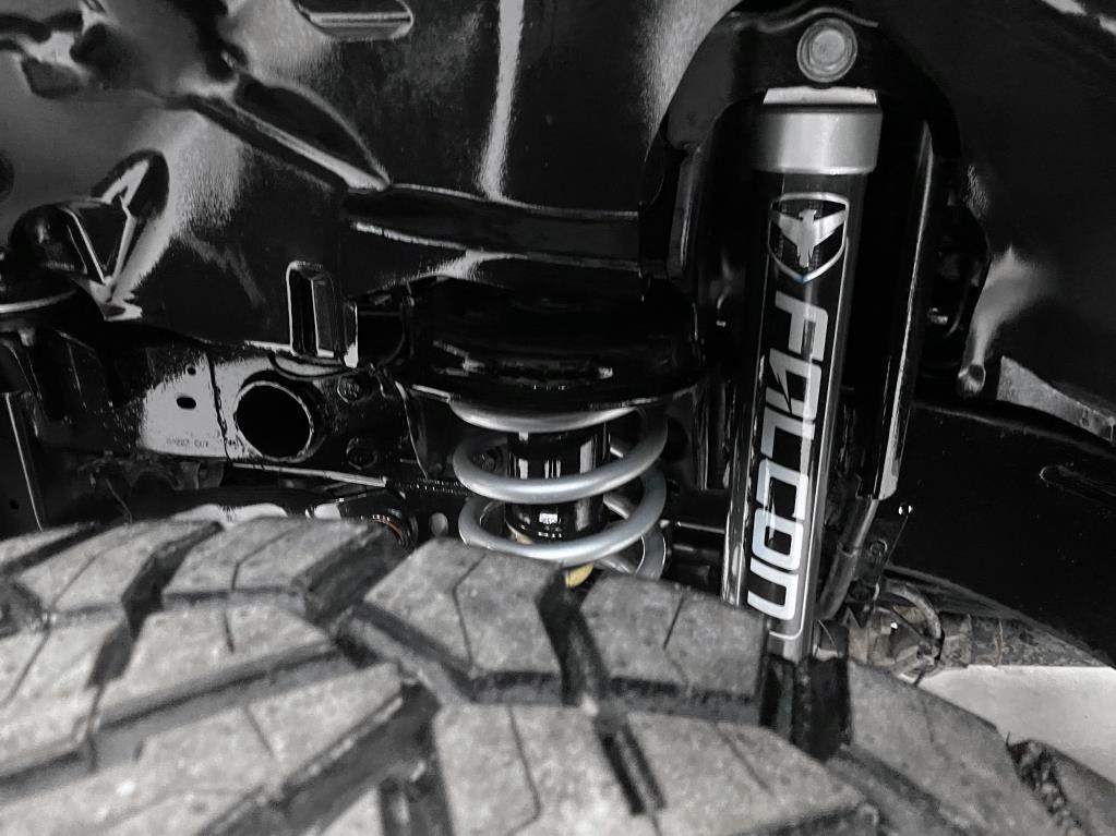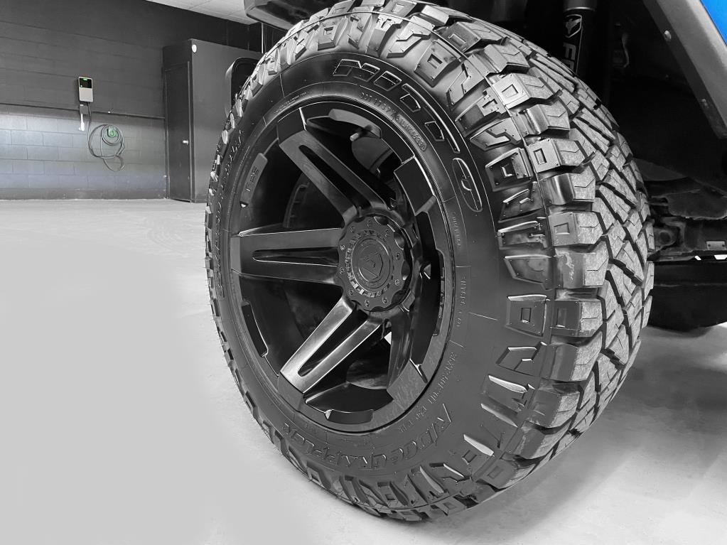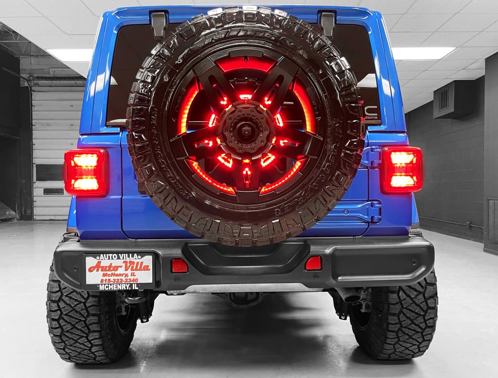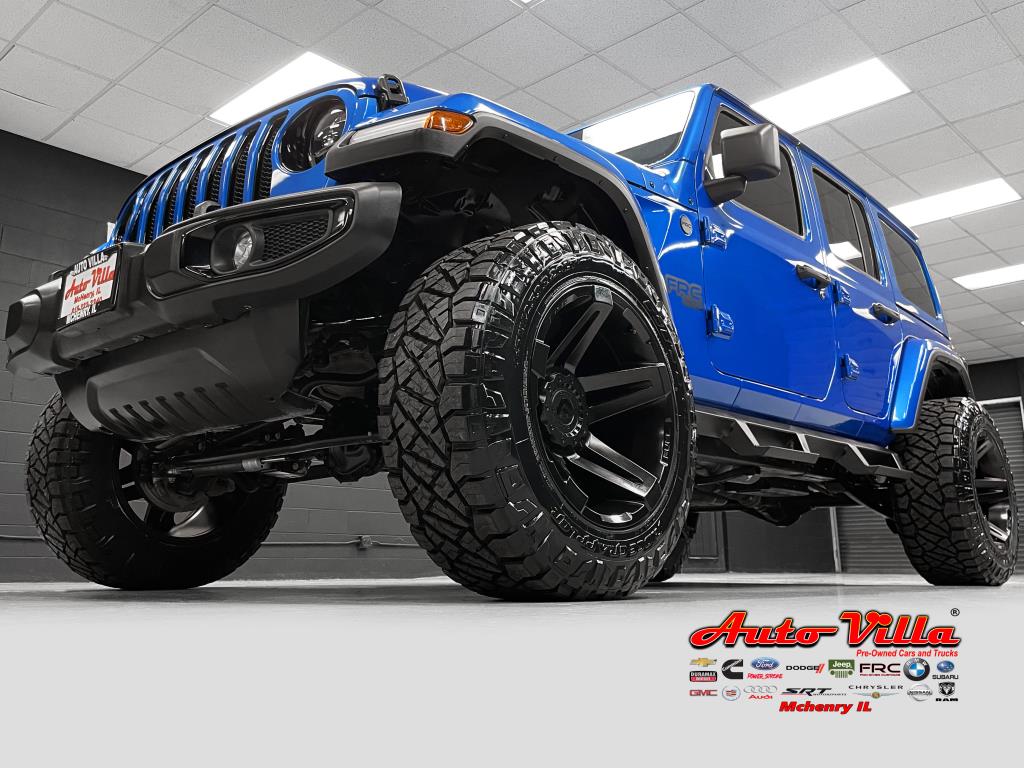 3.6L VVT V6 with eTorque upgrade, Altitude Package, and custom work by Fox River Customs. It's lifted with a 3.5-inch premium suspension featuring Falcon 2.1 shocks, a heavy-duty adjustable track bar, and a Falcon steering stabilizer. Rolling on 20x12 Fuel Off-Road wheels wrapped in 35x12.5 Nitto Ridge Grappler tires, it also sports NFAB step bars, tinted windows with a visor, and a color-matched 3-piece removable hardtop. Inside, there's leather seating, heated seats and steering wheel, an 8.4-inch touchscreen with navigation, Apple CarPlay, Android Auto, Alpine sound system with rear subwoofer, streaming Bluetooth, and a 4G LTE Wi-Fi hotspot. Extras include LED lighting, LED 3rd brake light, remote start, back-up camera, proximity keyless entry, advanced safety features like adaptive cruise control, forward collision warning, blind-spot monitoring with cross-path detection, park assist, and XM Sirius radio. Auto Villa Custom Trucks, 3017 W IL120, McHenry, IL 60051. Contact: 815-322-2340.
